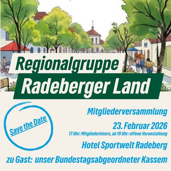 22.01.2026 - Am 23.02. steht unsere Mitgliederversammlung in Radeberg an. Unser Dresdner Bundestagsabgeordneter Kassem Taher Saleh hat uns für den 23.02. zugesagt nach Radeberg zu kommen! Die derzeitige Planung sieht eine reguläre Mitgliederversammlung ab 17 Uhr mit inhaltlichem…