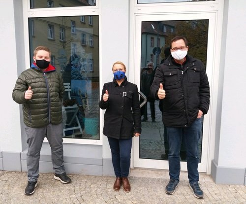 Susann Kolba (Kreisvorsitzende), Jens Bitzka (Kreisvorsitzender) und Lukas Mosler (Kreischatzmeister) haben am 28. November 2020 den Mietvertrag für ein Ladenlokal in Hoyerswerda unterschrieben.