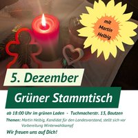 Ich darf Euch alle sehr herzlich zum nächsten Stammtisch am 5. Dezember im Grünen Laden (Tuchmacherstr. 13, Bautzen) einladen.