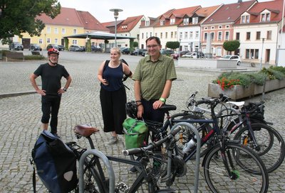 Treff war in Prietitz, gemeinsam radelten Gerhard Liebscher, Jens Bitzka (Covorsitzender Bündnisgrüne Kreisvorsitzender Bautzen), Frank Sühnel (Grüne Fraktion Kreistag Bautzen) und Pauline Grahlmann (Mitarbeiterin Gerhard) nach Elstra in das dortige Rathaus. Der Pulsnitzer Stadtrat Gerd Kirchhübel gesellte sich dort dazu. Bürgermeister Frank Wachholz, Michael Reißig (Amtsleiter Tiefbau Landkreis Bautzen) und der zuständige Planer stellten das Projekt vor und es entwickelte sich ein munteres Gespräch zu dieser Planung und allgemein um die ganze Problematik des Radwege- bzw. Straßenbaus. Eine Quizessenz: es fehlt nicht am Geld, sondern an Gehirn. Denn es fehlen Planer und der Willen, da voran zu kommen.