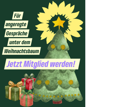 Hier kommt das perfekte Last-Minute-Geschenk! Eine Mitgliedschaft bei BÜNDNIS 90/DIE GRÜNEN stärkt nicht nur die grünen Themen auf politischer Ebene, sondern sorgt auch gleich noch für angeregte Gespräche mit der Familie unter dem Weihnachtsbaum, so wird es bestimmt nicht langweilig.