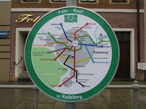 Es handelt sich um, im Radeberger Stadtgebiet, durchgängig ausgeschilderte Fahrradrouten. Der dazugehörige Übersichtsplan wird dieser Tage an den Ortseingängen und Radroutenkreuzungen montiert.