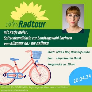 im Rahmen der bevorstehenden Kommunal- und Landtagswahlen 2024 in Sachsen laden wir herzlich zur Bündnisgrünen Radtour der Regionalgruppe Hoyerswerda und Umgebung am 20. April 2024 ein!