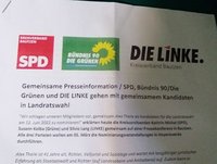 "Wir schlagen unseren Mitgliedern vor, gemeinsam Alex Theile als Kandidaten für die Landratswahl am 12. Juni 2022 zu nominieren!" erklärten heute die Kreisvorsitzenden Kathrin Michel (SPD), Susann Kolba (Grüne) und Silvio Lang (LINKE) gemeinsam auf einer Pressekonferenz in Bautzen. Alle drei Parteien wollen am 05. März die Nominierungsveranstaltungen in Hoyerswerda durchführen.